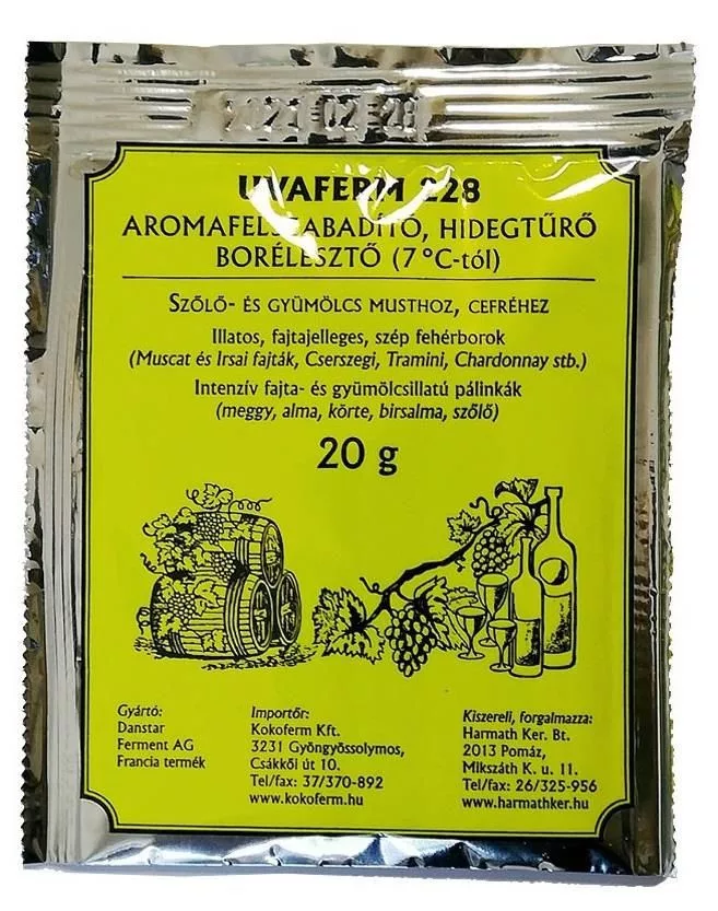 A 20g-os csomag tartalma 100l cefréhez elegendő.