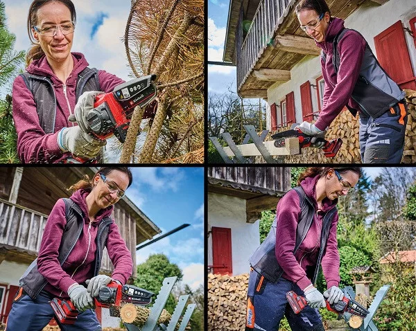 PXC 18V Li-ion akku és töltő nélkül + fűrészlánccal és fűrésztartó övtokkal