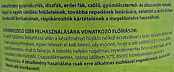 A készítmény metszési, vágási és egyéb sérülési felületeknek, továbbá repedések lezárására, valamint a sérült felületen kórokozók fertőzésének, rágókárosítók kártételének a megelőzésére használható.
