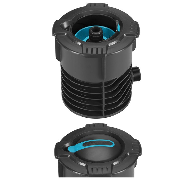 A csap és a Sprinkler System vagy a Pipeline közötti csatlakozás kényelmes és biztonságos. A domború fedél kinyitáskor eltűnik a Csatlakozódoboz belsejében, így még fűnyírás közben sem lesz útban.