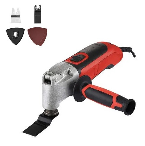Elektromos multifunkcionális gép csiszoláshoz és vágáshoz, 300W teljesítmény (230V/50Hz), üresjárati fordulatszám 15.000-22.000 fordulat/perc, gyors szerszámcsere, kiegészítők 1db fűrészlap, 1db kaparó, 1db csiszolótalp, 2db csiszolópapír, műanyag hordtáska.