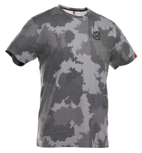 Rövid ujjú szürke terepmintás unisex póló. Ideális viselet pulóver alatt, vagy melegebb időben önmagában is hordható.