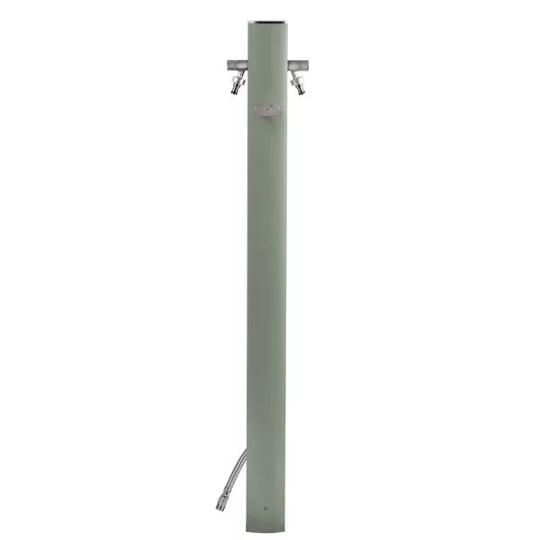 Talajba telepíthető, elegáns ovális profilú alumínium vízvételi oszlop dupla vízkimenettel. Fő előnye, hogy egyszerre használható locsolásra és kézmosásra a két külön csapnak köszönhetően. Felhasználás: nagyobb kertek, udvarok központi vízvételi helyeként. Műszaki adatok: Magasság: 120 cm; Anyag: Porfestett alumínium; Csatlakozás: 1/2"; Tartozék: 2 db csap, rozsdamentes tömlőtartó. Elérhető színek: matt fekete, galambszürke, khaki, vörös, terracotta, fehér. A rögzítőtalp nem tartozék.