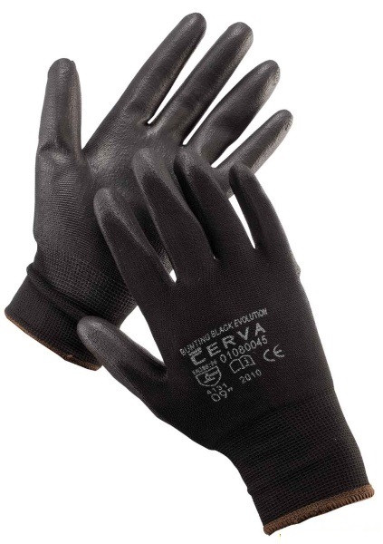 Kötött, varratmentes poliészter kesztyű vékony poliuretán bevonatú tenyérrel és ujjakkal, valamint rugalmas mandzsettával.