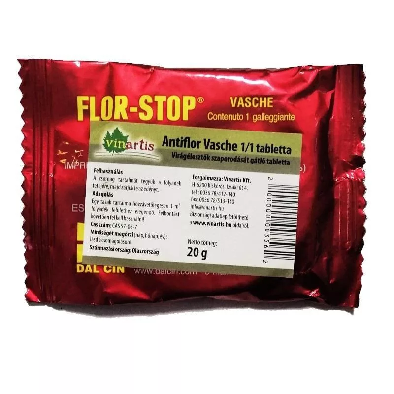 Virágélesztők szaporodását gátló tabletta. Egy tasak tartalma hozzávetőlegesen 1 m2 folyadék felülethez elegendő. Felbontást követően fel kell használni!